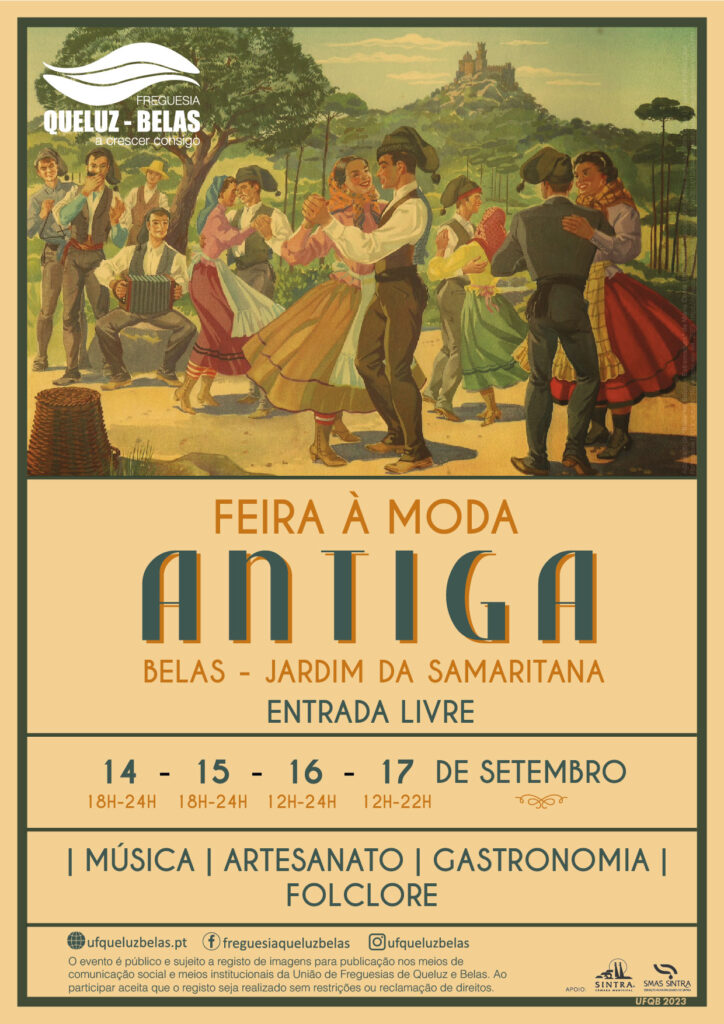 Ao longo de quatro dias, a partir desta quinta-feira, às 18h00, o Jardim da Samaritana vai ser palco da recriação de um mercado saloio à moda antiga, do início do século XX, com artesanato, gastronomia, música popular e folclore. Nesta feira à moda antiga, promovida pela Junta de Freguesia de Queluz e Belas e que conta com o apoio da Câmara Municipal e dos SMAS de Sintra, não vai faltar a algazarra de gentes e pregões e os trajes a rigor, para conferir maior autenticidade ao evento.