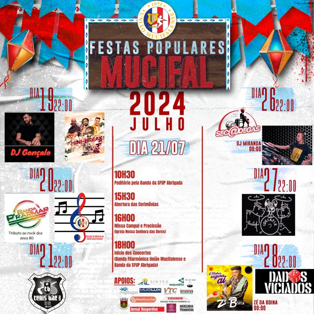 Estão a chegar as Festas Populares do Mucifal, que este ano se realizam nos dias 19, 20, 21 e 26, 27 e 28 de julho, no complexo desportivo da União Mucifalense.