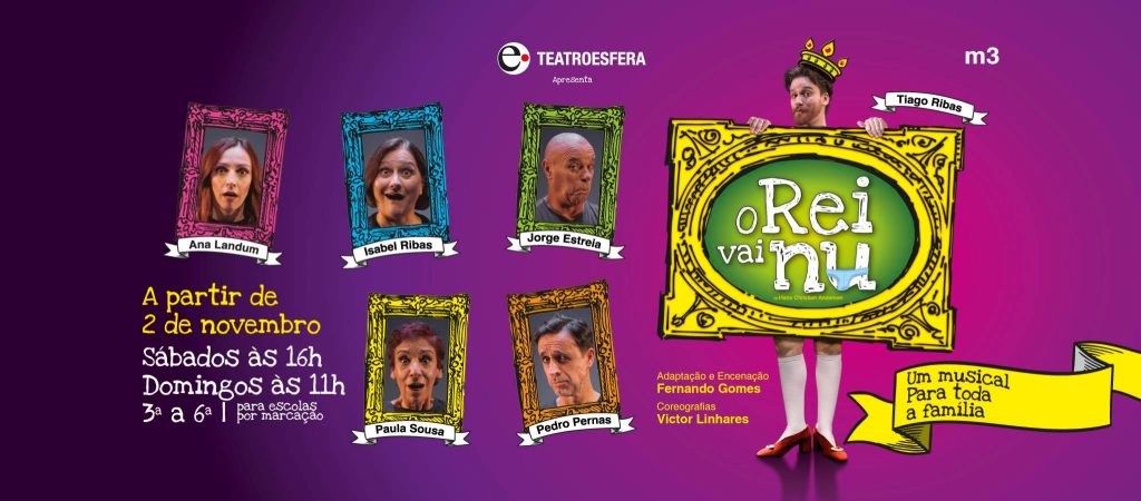 O Teatroesfera, apresenta “O Rei vai nu”, um musical para toda a família que acontece aos sábados, às 16h00, e domingos, pelas 11h00, em Monte Abraão.