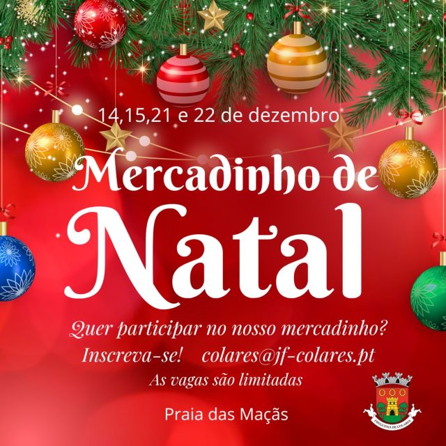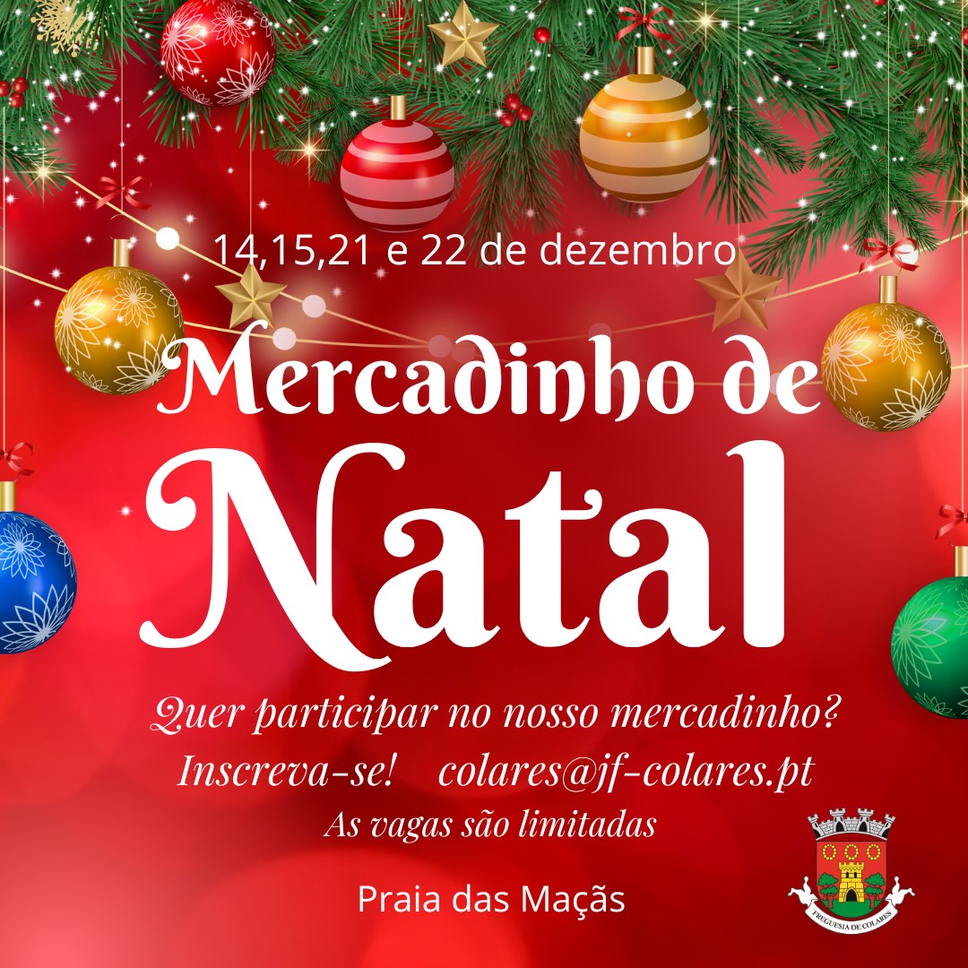Realiza-se nos dias, 14, 15, 21 e 22 de dezembro, um “Mercadinho de Natal”, no Campo de Jogos da Praia das Maçãs (Colares).