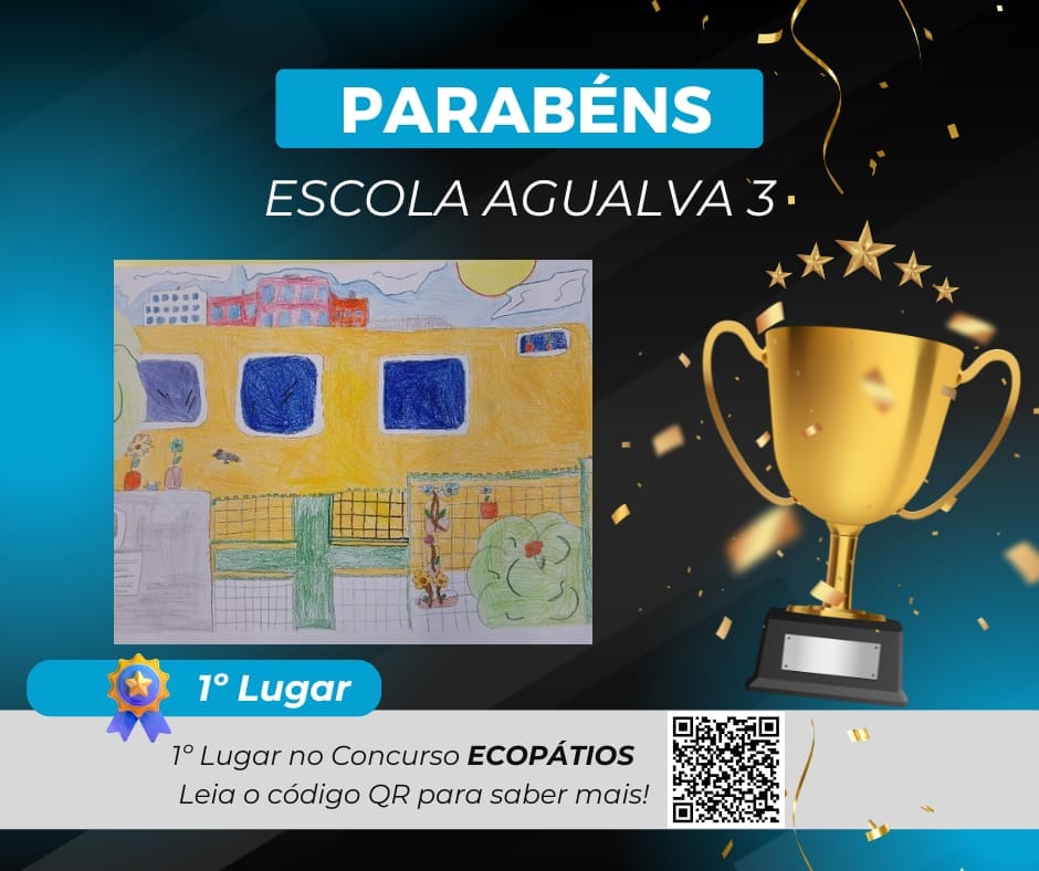 E a EB1 n.3 de Agualva, conquistou o 1.º prémio do projeto Eco-Escolas – Concurso, com o seu projecto que propõe a construção de um “Jardim vertical com a palavra AGUALVA na rede da escola”, “Recolha de água da chuva, bebedouros para pessoas e animais”; “Percurso de ciclovia, baloiço na árvore e jogos pintados no piso do pátio” e “Telheiros nas duas fachadas mais expostas ao sol”.
