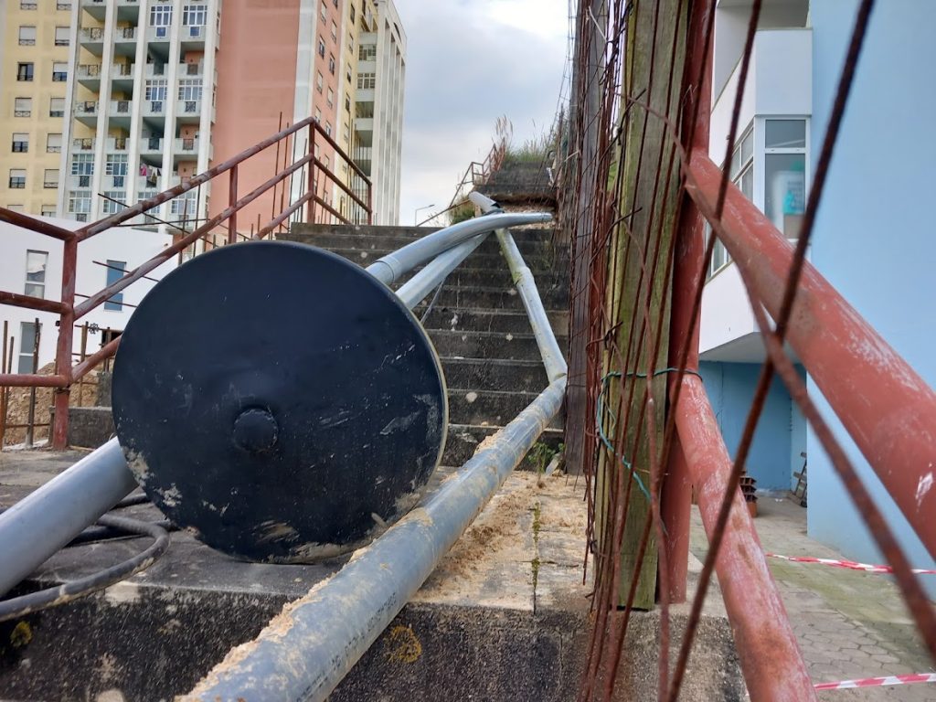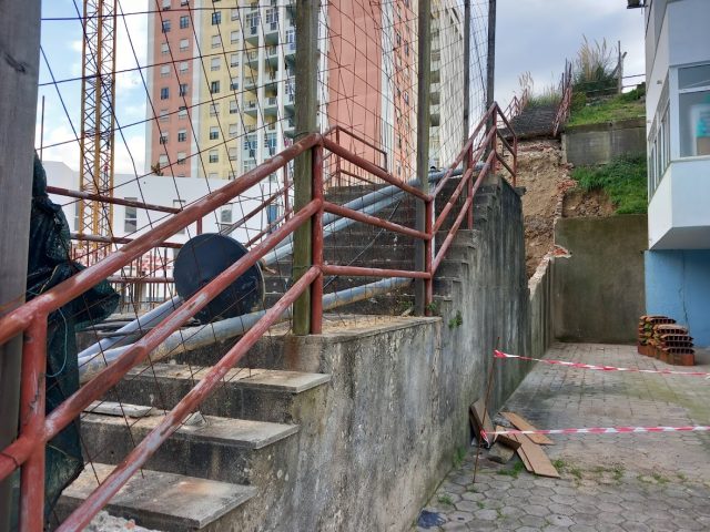 As escadas encontram-se vedadas e fazem parte de uma obra que está a decorrer junto a um prédio de habitação, mas os moradores temem que o mau tempo traga consequências, sobretudo para os moradores que residem no prédio junto à escadaria.