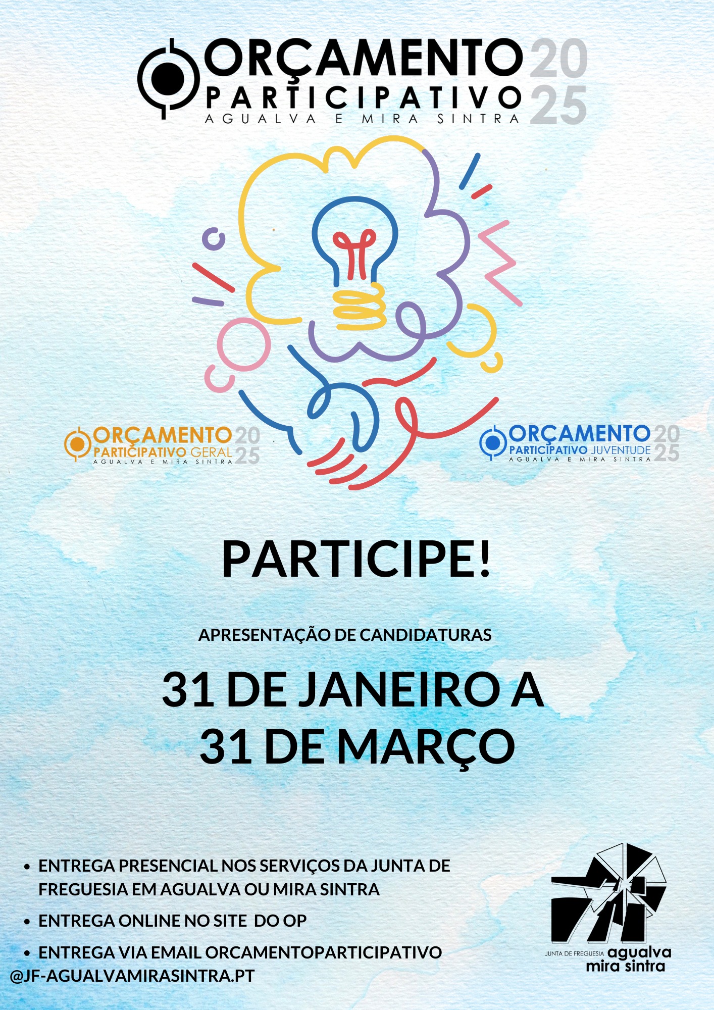 Mais informações: orcamentoparticipativo@jf-agualvamirasintra.pt ou no site online da União das Freguesias.