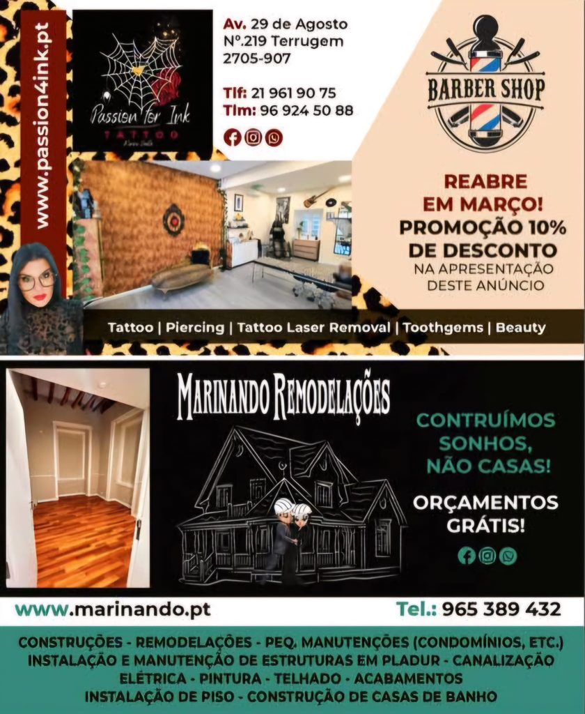 Confessa que por ser mulher, já se sentiu “um pouco discriminada”, explicando que “era um ramo maioritariamente masculino e que por isso, numa fase inicial foi difícil entrar na atividade”. Nos dias que correm “já não sinto essa pressão”, refere Marina Smith, já distinguida e premiada em várias ocasiões, pelo resultado e qualidade dos seus trabalhos e pela profissão que tanto ama. Em jeito de desafio, “somos mais que um estúdio de tatuagens, venham descobrir a nova tattoo shop”, na Terrugem.
