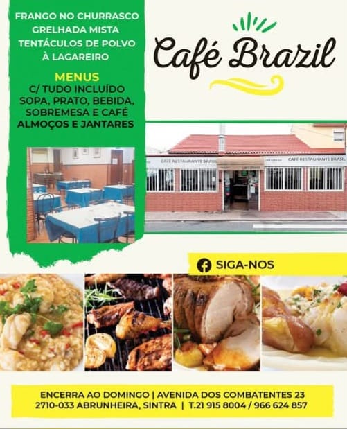 O “Café Brasil – Restaurante e Churrasqueira’’, na Abrunheira, é sítio ideal para quem gosta comer bem, desfrutando de um ambiente acolhedor, renovado, fiel à boa gastronomia portuguesa. Todos os dias há um menu variado de dois pratos, de carne e peixe e sempre grelhados no carvão.