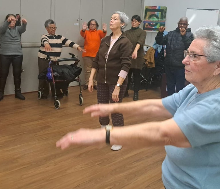 Os participantes tiveram a oportunidade de vivenciar uma envolvente aula de Biodanza, promovendo o movimento, a expressão e a alegria. No final, um momento de partilha gerou uma reflexão importante: “Que tipo de atividades, serviços ou iniciativas fariam sentir-se mais felizes?”