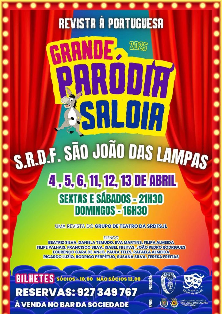 O Grupo de Teatro Amador da Sociedade Recreativa Desportiva e Familiar de São João das Lampas (SRDFSJL) vai estrear a “Grande Paródia Saloio”. Teatro à boa maneira portuguesa com muito humor e diversão que conta com um grupo renovado de atores, autores e ensaiador.