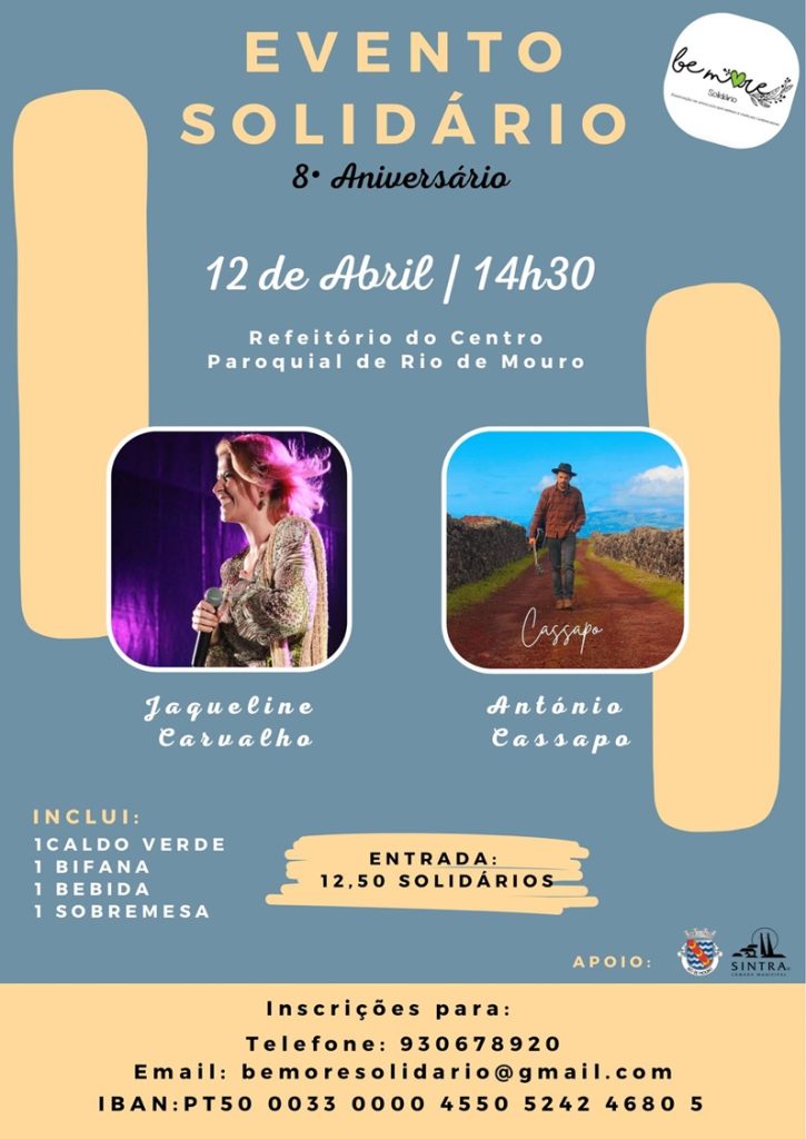 A Associação de Apoio aos Sem-Abrigo e Famílias Carenciadas (Be More Solidário) sediada em Rio de Mouro assinala o seu 8.º aniversário,este sábado 12 de abril às 14h30, no Centro Paroquial de Rio de Mouro.
