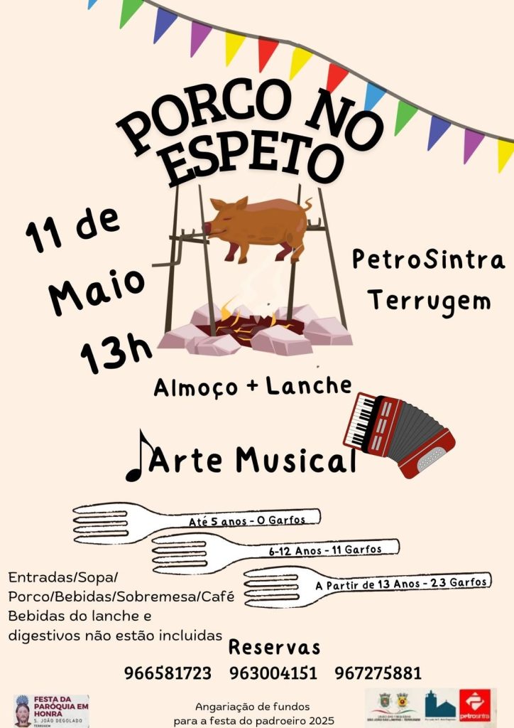 Vai decorrer nas instalações da PetroSintra na Terrugem, mais uma iniciativa de angariação de fundos, desta vez um “porco no espeto”, a favor da comissão organizadora das Festa da Paróquia em Honra de São João Degolado.
