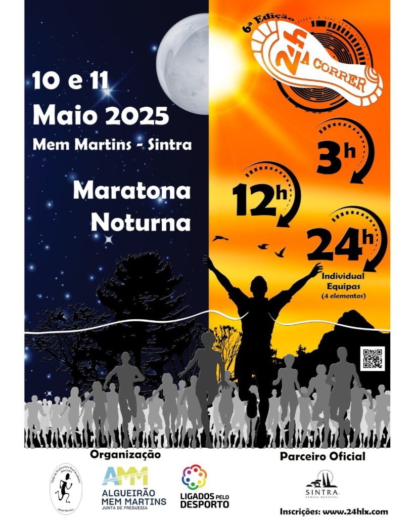 A VI edição das “24 horas a Correr de Mem Martins – Sintra”, prova de resistência e de longa duração realiza-se nos dias 10 e 11 de maio. O evento que tem abertas inscrições, desafia os atletas a correr por 24 horas, com outras modalidades mais curtas de 12 e de 3 horas, além da maratona noturna.
