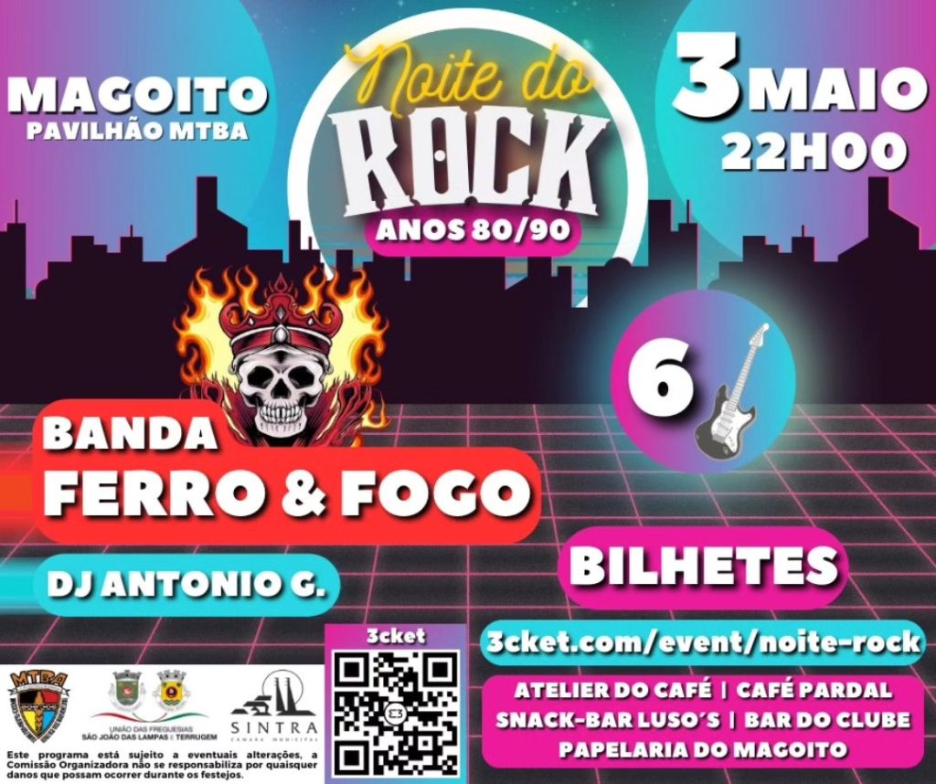 O Pavilhão do MTBA no Magoito, será palco da “Noite do Rock”, uma viagem inesquecível pelos grandes êxitos dos anos 80 e 90.