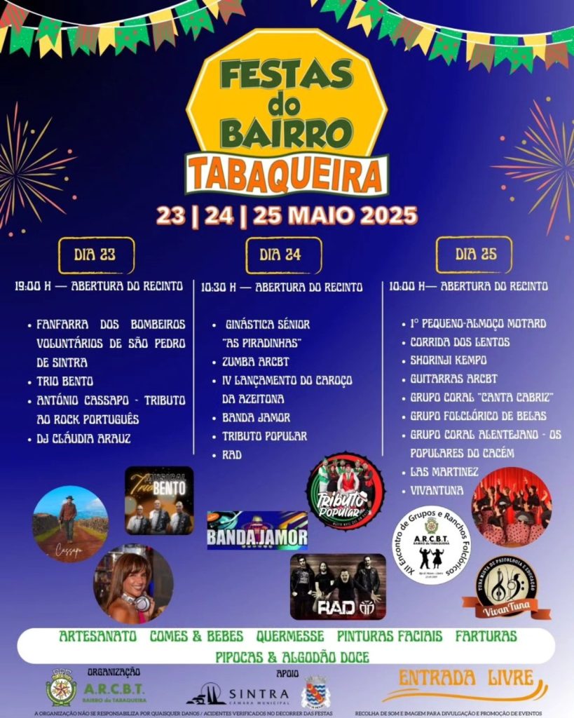 As Festas da Tabaqueira realizam-se este ano nos dias 23, 24 e 25 de maio, com um programa repleto de animação, atividades e muita música. Entre os destaques estão António Cassapo – Tributo ao Rock Português, DJ Cláudia Arauz, Trio Bento, Banda Jamor e Las Martinez. E há muito mais!