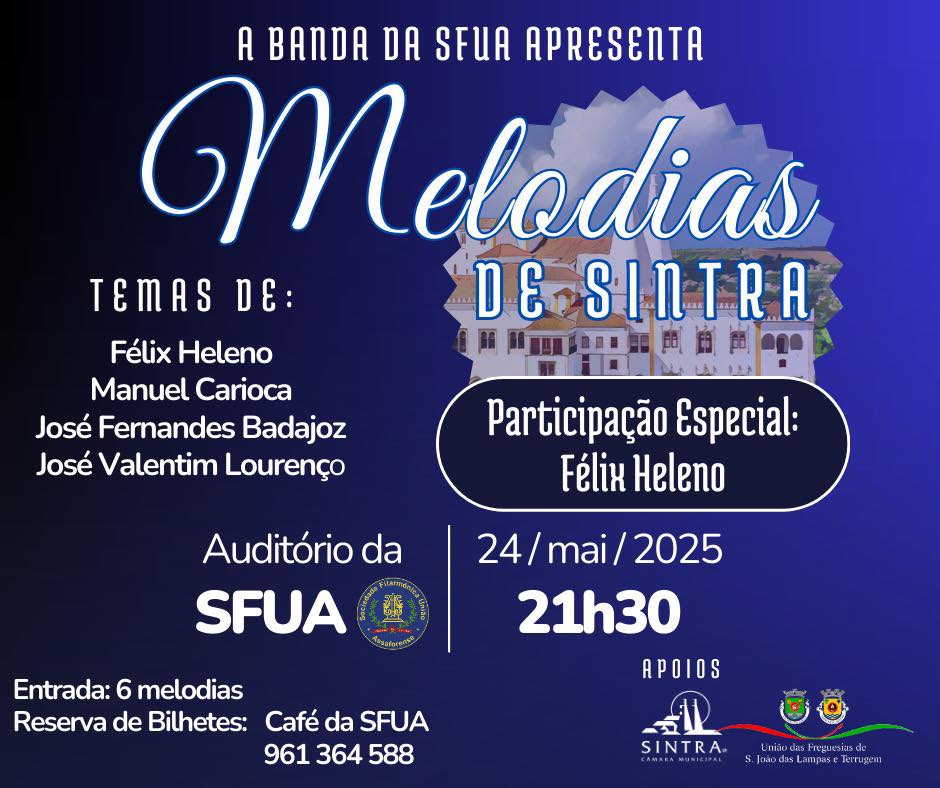 No próximo dia 24 de Maio, às 21h30, a Banda da Sociedade Filarmónica União Assaforense (SFUA) sobe ao palco do auditório da coletividade, para apresentar o espetáculo, “Melodias de Sintra”, com a participação especial de Félix Heleno.