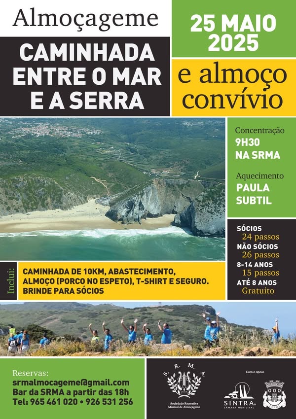 A “Caminhada entre o Mar e a Serra”, organizada pela Sociedade Recreativa Musical de Almoçageme, oferece aos participantes a oportunidade de percorrer 10 km por paisagens deslumbrantes.