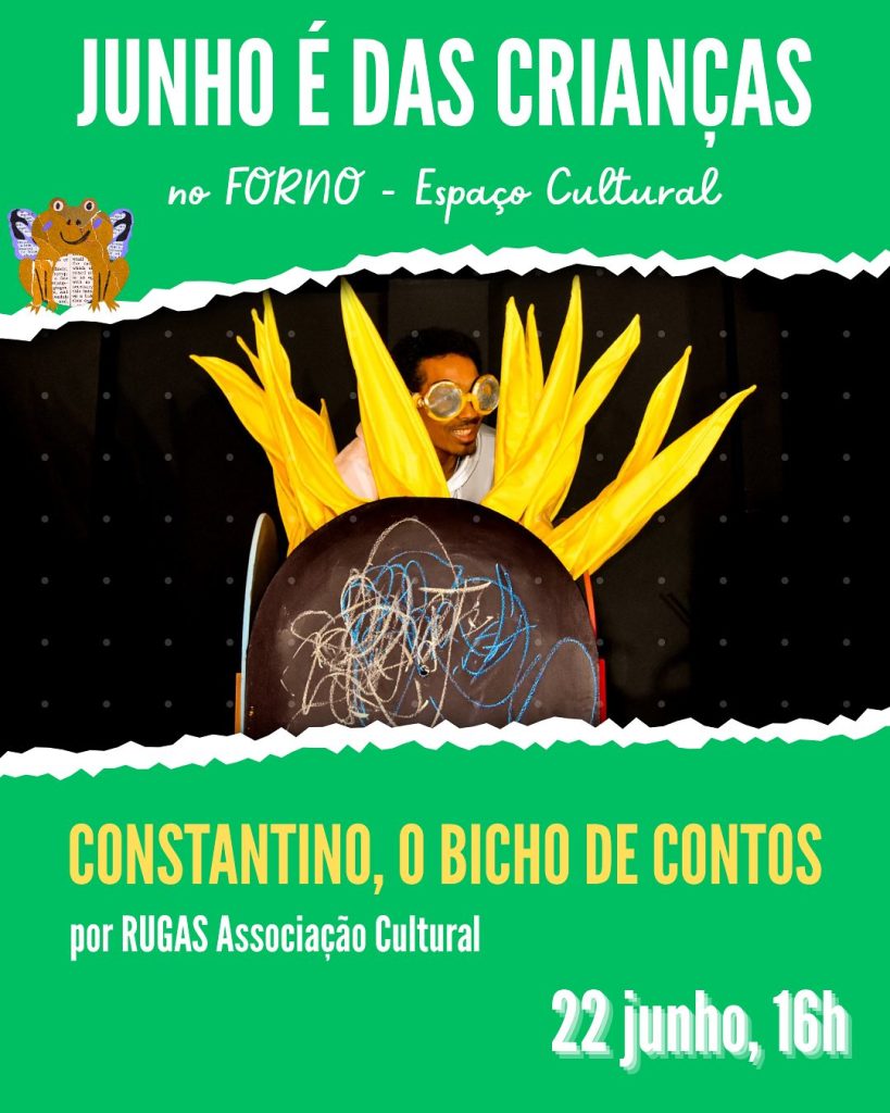 Para encerrar a edição deste ano de “Junho é das Crianças”, está no dia 22 a apresentação de “O Bicho de Contos” por parte da Rugas Associação Cultural, adaptado da obra com o mesmo nome de Luís Miguel António. Na sinopse lê-se que “o espetáculo leva-nos pelas diferenças e descobertas de um bicho-da-conta, que o irão motivar a agir com confiança e coragem no seu espaço-mundo. Entramos por um jardim onde cada ser tem o seu papel, mas cedo Constantino percebe que é diferente de todos os bichos-de-conta que aí habitam – desde cedo percebe que não sabe contar.”