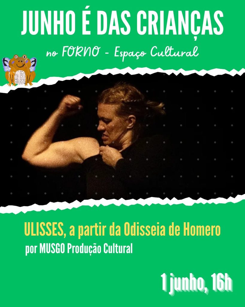 A primeira sessão acontece já no dia 1 de junho, pelas 16h, com a apresentação de “Ulisses” pelo Musgo Produção Cultural. Neste espetáculo, uma atriz assume o palco sozinha, que, em jeito de contação de histórias, nos guia pelo regresso de Ulisses desde o fim da guerra de Tróia. “Do incrível encontro com Polifemo, o monstro de um só olho, a descida ao Hades, o mundo dos mortos, à ilha das sereias e o grande cavalo de Tróia, os episódios sucedem-se numa vertigem que faz resumir dez anos em menos de nada.”, lê-se na sinopse.
