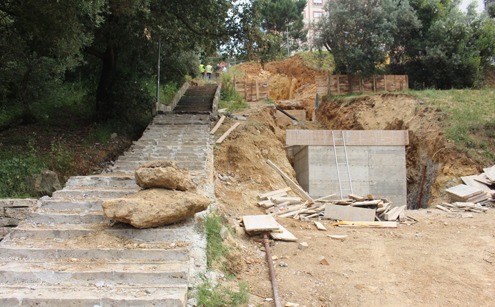 Estão em curso as obras de remodelação dos coletores de drenagem de águas residuais domésticas e pluviais na escadaria da Rua do Alecrim, na Rinchoa, freguesia de Rio de Mouro, com conclusão prevista para o final deste ano.