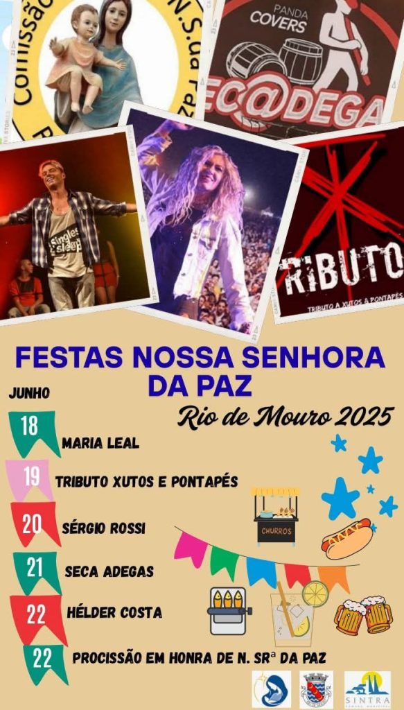 Organizadas pela Paróquia de Rio de Mouro, as festas arrancam no dia 18 de junho, com a cantora Maria Leal. Seguem-se, Tributo aos Xutos e Pontapés (19); Sérgio Rossi (20); Seca Adegas (21); Hélder Costa (22).