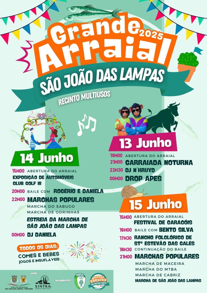 A Marcha de São João das Lampas 2025 está de volta e sairá à rua no dia 14 de junho, às 22h00, juntamente com a Marcha do Sabugo e de Odrinhas, no segundo dia do Grande Arraial, que se realiza no Recinto Multiusos de São João das Lampas, de 13 a 15 de junho.