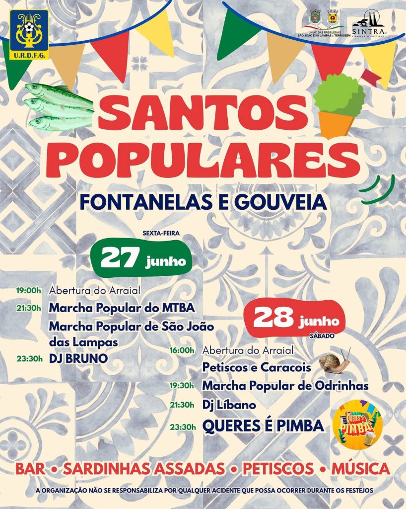 Nos dias 27 e 28 de junho, a União Recreativa e Desportiva de Fontanelas e Gouveia celebra os Santos Populares com muita animação. Dia 27, desfile das Marchas Populares do MTBA (19h00) e de São João das Lampas (21h30)” e do DJ Bruno (23h30).