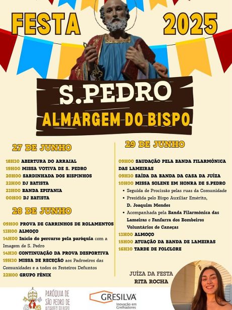 A tradição volta a cumprir-se em Almargem do Bispo com a Festa de São Pedro, organizada pela Paróquia de São Pedro de Almargem do Bispo, que decorrerá entre os dias 27 e 29 de junho.