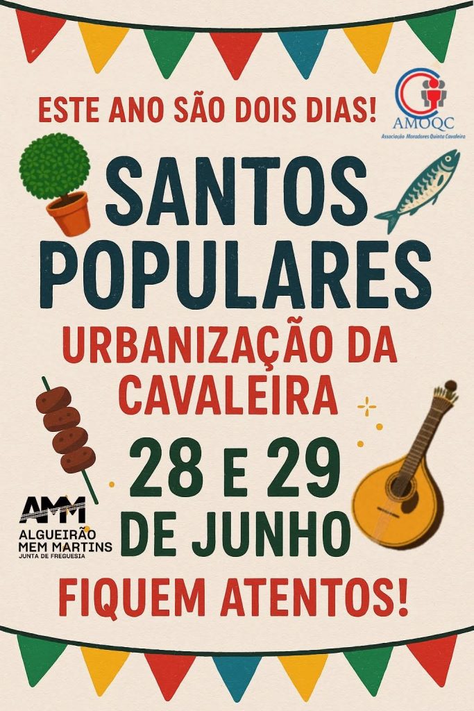 Nos dias 28 e 29 de junho, a Associação de Moradores da Quinta da Cavaleira (AMOQC), organiza mais uma edição dos Santos Populares.