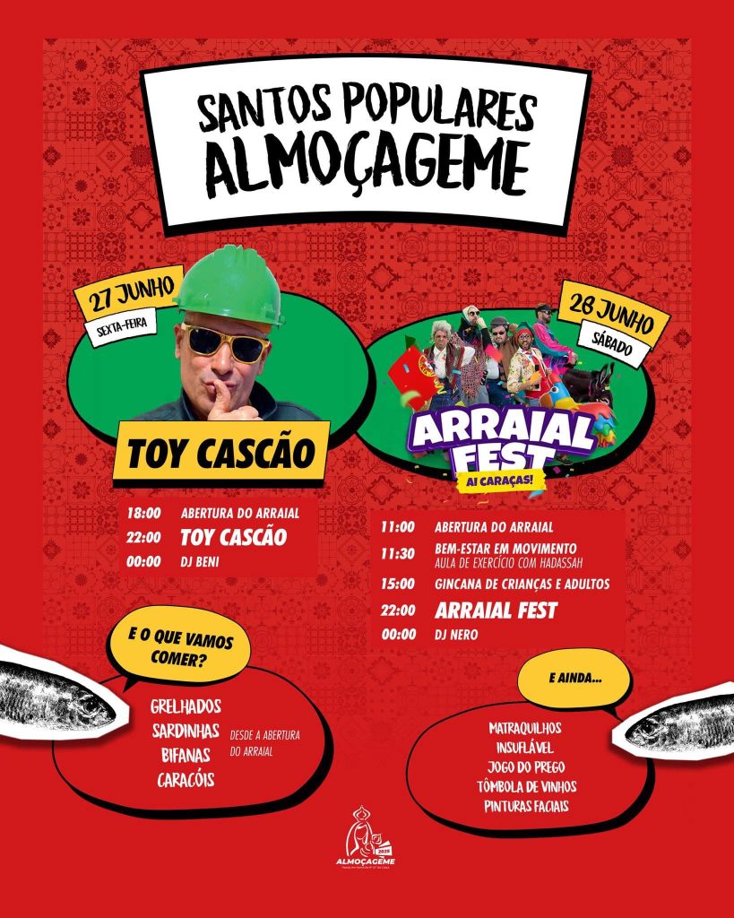 Nos dias 27 e 28 de junho, Almoçageme, na freguesia de Colares, celebra os Santos Populares com Toy Cascão (27) e “Arraial Fest – Ai Caraças” (28).