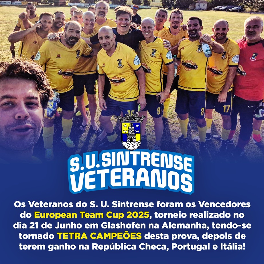 Os Veteranos do Sport União Sintrense (S.U. Sintrense) sagraram-se campeões europeus ao conquistar, no passado sábado, 21 de junho, o título do European Team Cup 2025, numa final disputada em Glashofen, na Alemanha.