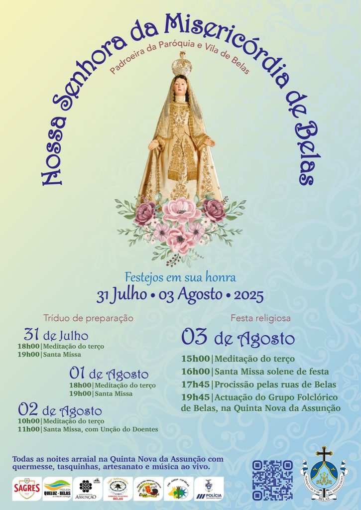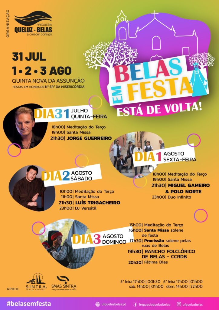 A freguesia de Queluz-Belas prepara-se para receber milhares de visitantes nas Festas em Honra de Nossa Senhora da Misericórdia de Belas, que decorrem de 31 de julho a 3 de agosto, na emblemática Quinta Nova da Assunção, iniciativa da União das Freguesias de Queluz-Belas e o apoio da Câmara Municipal e dos SMAS de Sintra.