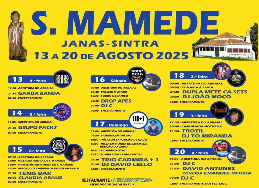 A aldeia de Janas volta a celebrar em grande as Festas de São Mamede, entre os dias 13 e 20 de agosto. O tradicional arraial promete muita música, eventos religiosos, atividades culturais e animação.
