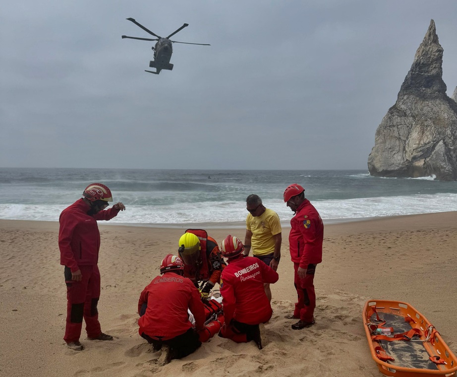 Após o resgate, a mulher foi encaminhada pelos Bombeiros Voluntários de Almoçageme para uma unidade hospitalar.