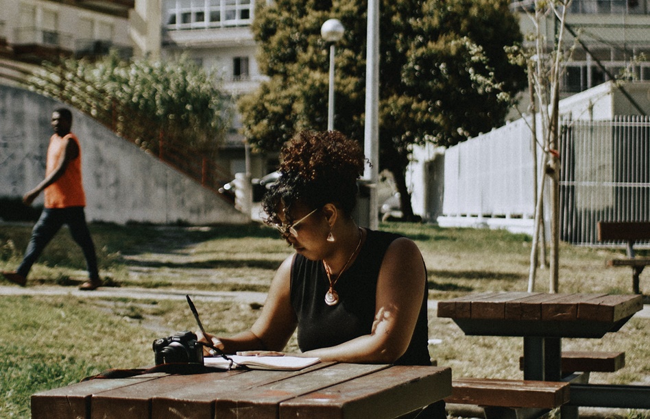 A proposta cruza fotografia e tapeçaria para construir composições visuais que evocam memória, pertença e a reconstrução simbólica da comunidade. Um gesto artístico que a autora descreve como resistência, reparação e imaginação coletiva.