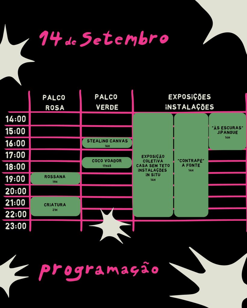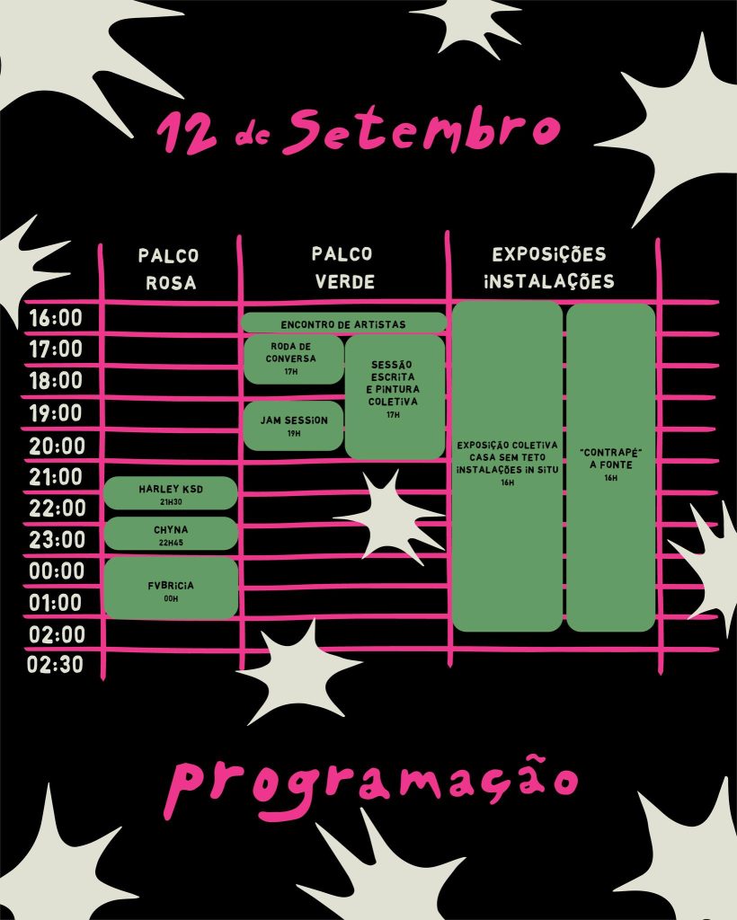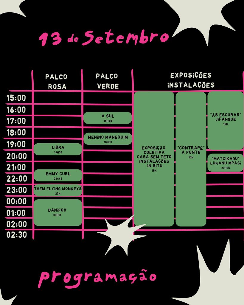 A programação artística inclui ainda uma exposição coletiva com obras de Cláudia Simões, Sofia Cabanas, Mariana Laginha e Brecht de Vleeschauwer, além de instalações de Luísa Ramires, Margarida Lopes Pereira, Sepher Awk e Lukanu Mpasi, pensadas para dialogar com a arquitetura dos jardins da Quinta da Ribafria.