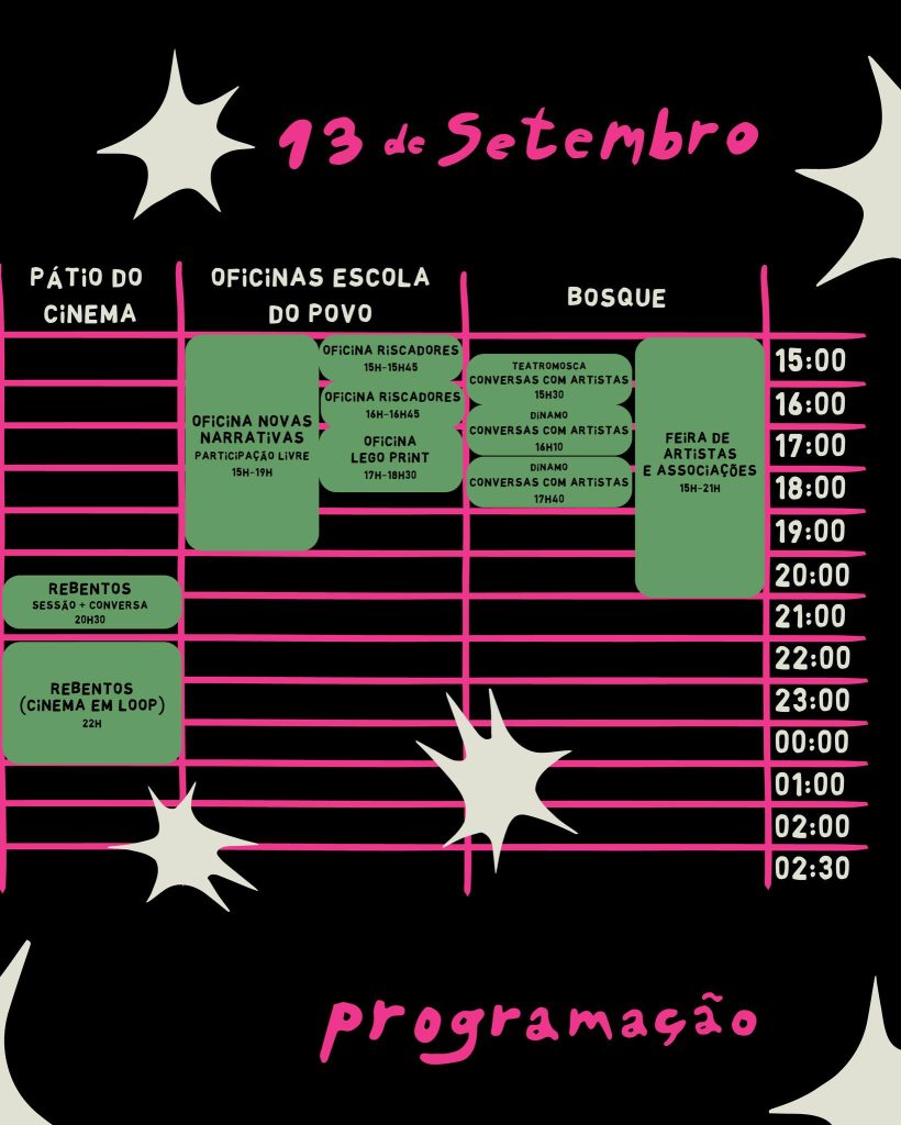 Durante os três dias, vários debates vão explorar diferentes perspetivas do mundo artístico. A companhia teatromosca discutirá a relação entre público e artistas, o festival MIL abordará o pensamento crítico na programação de festivais nacionais, e a associação Dínamo vai promover conversas sobre “Conexões Artísticas: A Periferia como Espaço de Transformação”.