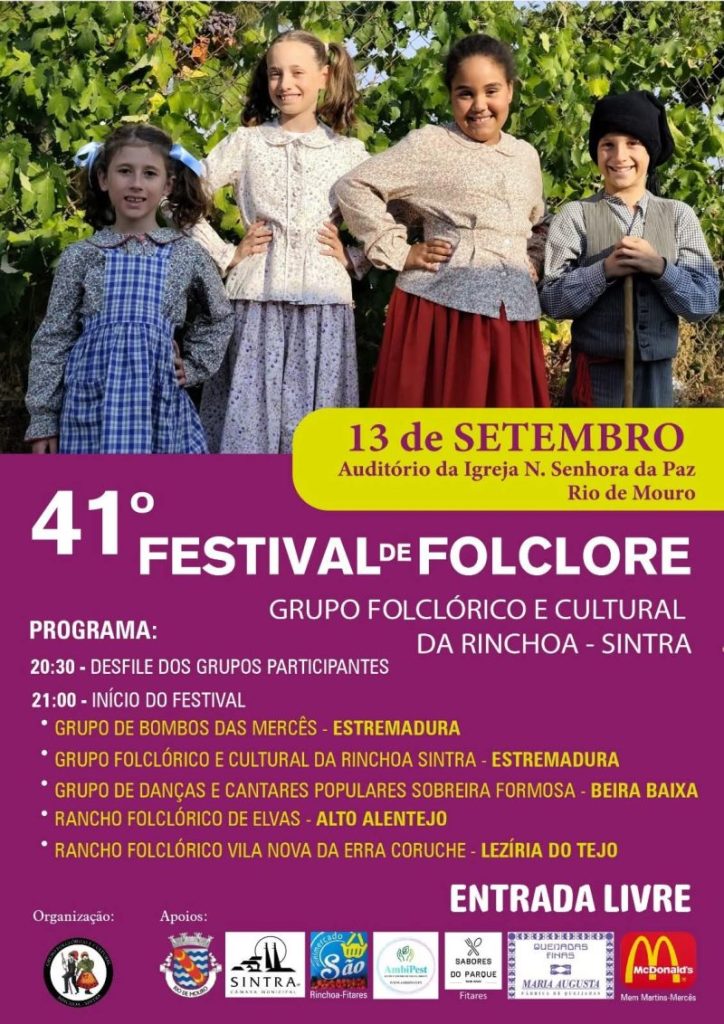 Rio de Mouro será palco do Festival de Folclore no sábado, dia 13 de setembro, a partir das 20h30, no auditório da Igreja da Nossa Senhora da Paz. A entrada é livre.