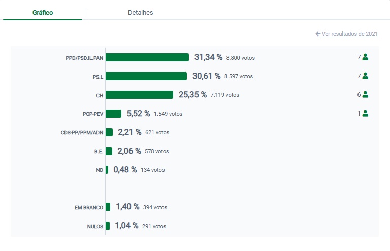 Paulo Coelho do CHEGA passou a ser a terceira força da freguesia com 25,35% (7.119) votos e seis mandatos.