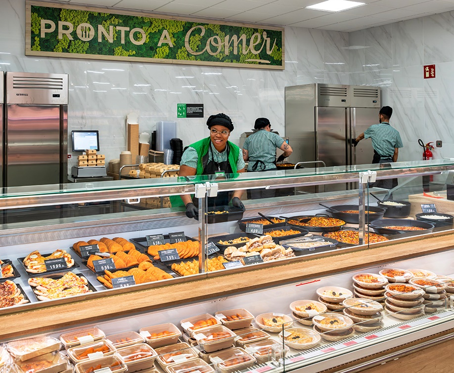 O novo espaço disponibiliza todas as secções habituais da insígnia — Talho, Peixaria, Charcutaria, Padaria e Pastelaria, Frutas e Legumes, Perfumaria, Cuidado do Lar e de Animais de Estimação — com corredores amplos e carrinhos de compras ergonómicos.
