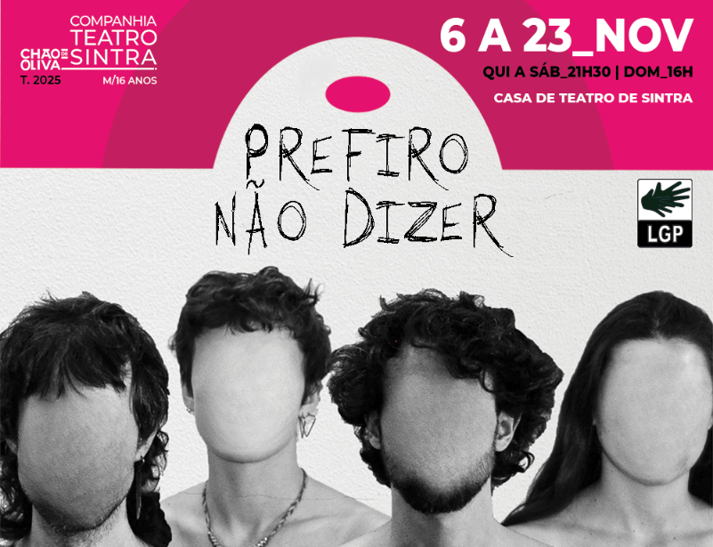 A peça de teatro documental Prefiro Não Dizer estreia na Casa de Teatro de Sintra entre 6 e 23 de novembro, com apresentações de quinta a sábado às 21h30 e aos domingos às 16h00. A criação, apoiada pela Direção-Geral das Artes no âmbito do Programa de Apoio Sustentado, propõe uma reflexão sobre género, preconceito, estereótipos e direitos humanos.