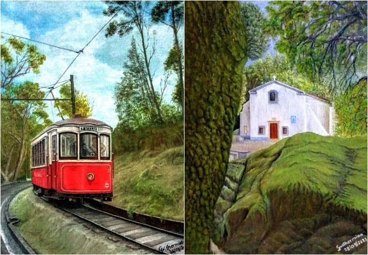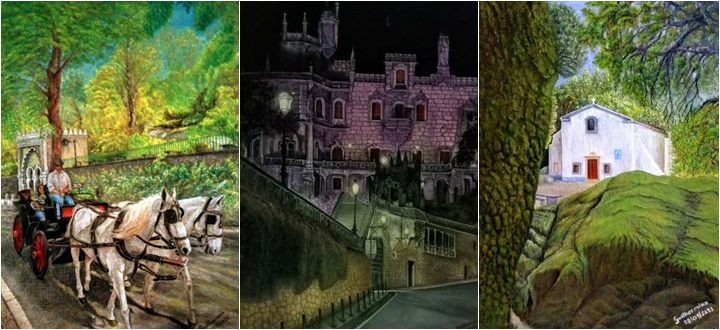 Entre as suas obras destaca-se o retrato do toureiro Manuel Conde, que o artista recorda com orgulho. Mas é sobretudo nas paisagens de Sintra, como o Palácio da Vila, o Castelo dos Mouros, Monserrate, a Regaleira, as charretes e o eléctrico, que encontra o seu refúgio criativo. “Olho para as imagens e pinto à minha maneira, com as minhas cores e o meu gosto. Às vezes vou mesmo ao local, como aconteceu com a Igreja de Santa Eufémia ou a Lagoa Azul.”