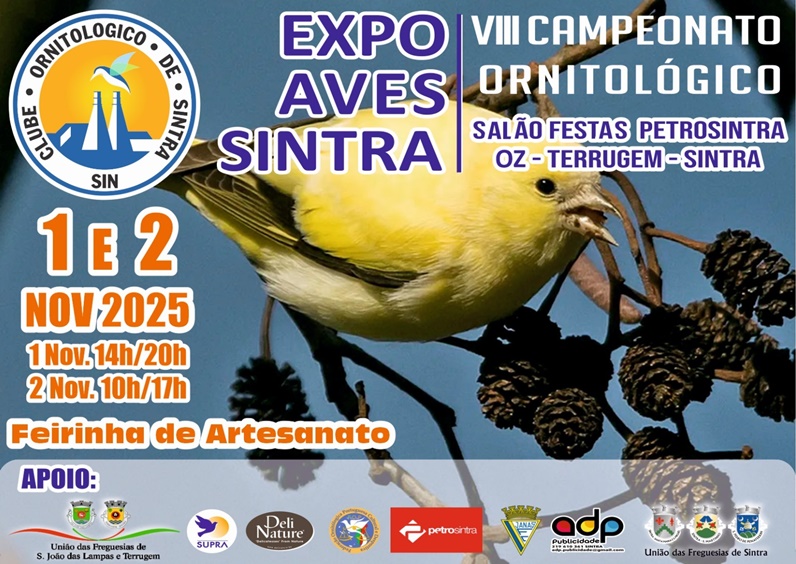 O Pavilhão da Petrosintra, na Terrugem, acolhe este fim de semana, dias 1 e 2 de novembro, o VIII Campeonato Ornitológico de Sintra, organizado pelo SIN – Clube Ornitológico de Sintra, com o apoio da União das Freguesias de São João das Lampas e UF de Sintra, da Federação Ornitológica Portuguesa (FOP), do CTJ-FOP diversos parceiros e patrocinadores.