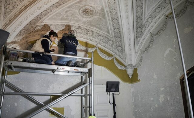 “Esta intervenção foi precedida de uma investigação histórica rigorosa. Conseguimos identificar as diferentes camadas de pintura acumuladas ao longo do tempo”, explica João Sousa Rego, presidente do Conselho de Administração da Parques de Sintra, sublinhando que os trabalhos acontecem com o palácio aberto à visitação, no âmbito da política Aberto para Obras, permitindo que os visitantes acompanhem os métodos de conservação e valorização do património.