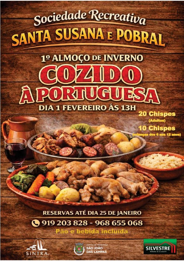 A Sociedade Recreativa Santa Susana e Pobral vai organizar, no próximo dia 1 de fevereiro, pelas 13 horas, o seu 1.º Almoço de Inverno, uma iniciativa que pretende valorizar a gastronomia tradicional portuguesa e promover o convívio entre a comunidade local. O prato principal será o clássico cozido à portuguesa, confecionado de acordo com a tradição.
