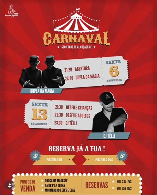 A Sociedade Recreativa e Musical de Almoçageme, na Freguesia de Colares, prepara-se para receber uma das festas mais animadas do ano, com a Carnaval Circus Party, evento inspirado no universo do circo, que promete dois dias de muita música, fantasia e diversão.