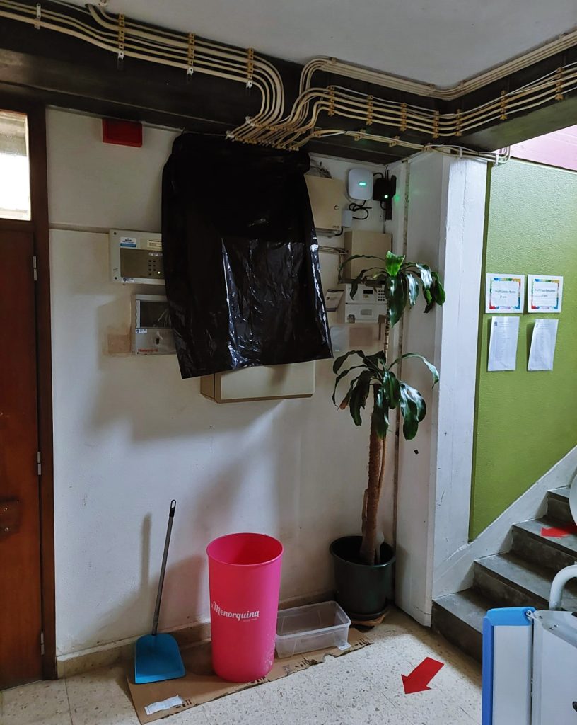 A gravidade do problema agravou-se quando entrou água num dos quadros elétricos e, ao tentar ligá-lo, uma auxiliar de ação educativa verificou a ocorrência de faíscas. “Duas salas ficaram sem eletricidade e o quadro encontra-se atualmente coberto com um plástico preto” e inacessível por razões de segurança. “Uma das casas de banho está encerrada” pelas mesmas razões.