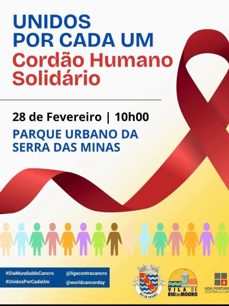 A Junta de Freguesia de Rio de Mouro em parceria com a Liga Portuguesa Contra o Cancro, promove a iniciativa “Unidos por Cada Um – Cordão Humano Solidário”, este sábado, dia 28 de fevereiro, às 10h00, no Parque Urbano da Serra das Minas.
