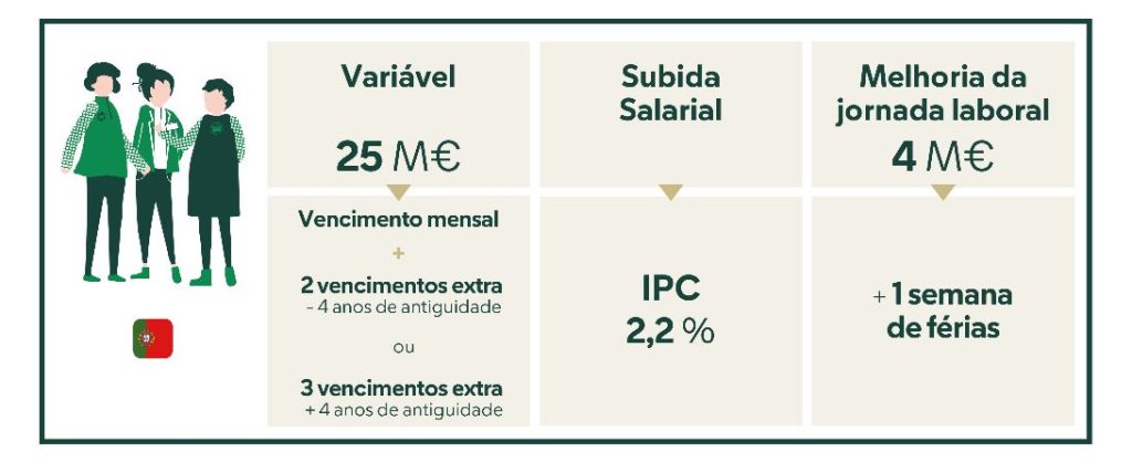 Este valor para o trabalhador traduz-se em dois vencimentos mensais para os que têm menos de 4 anos de antiguidade e em três vencimentos para os que que ultrapassam esta antiguidade, tendo em fevereiro, neste último caso, recebido 7.000 € brutos, onde se inclui, neste montante, o seu salário mensal.