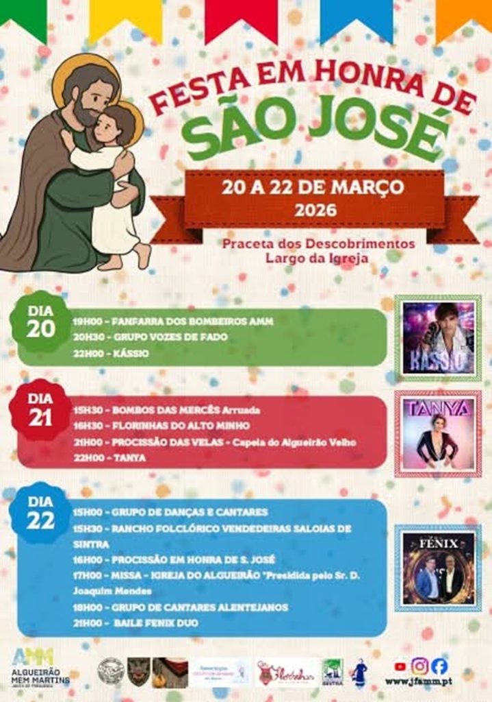 Algueirão–Mem Martins prepara-se para celebrar a tradicional Festa em Honra de São José, que decorrerá entre os dias 20 e 22 de março, na Praceta dos Descobrimentos (Largo da Igreja) no Algueirão. Durante três dias, o evento reunirá momentos de música, tradição, cultura popular e celebração religiosa, prometendo animar residentes e visitantes.