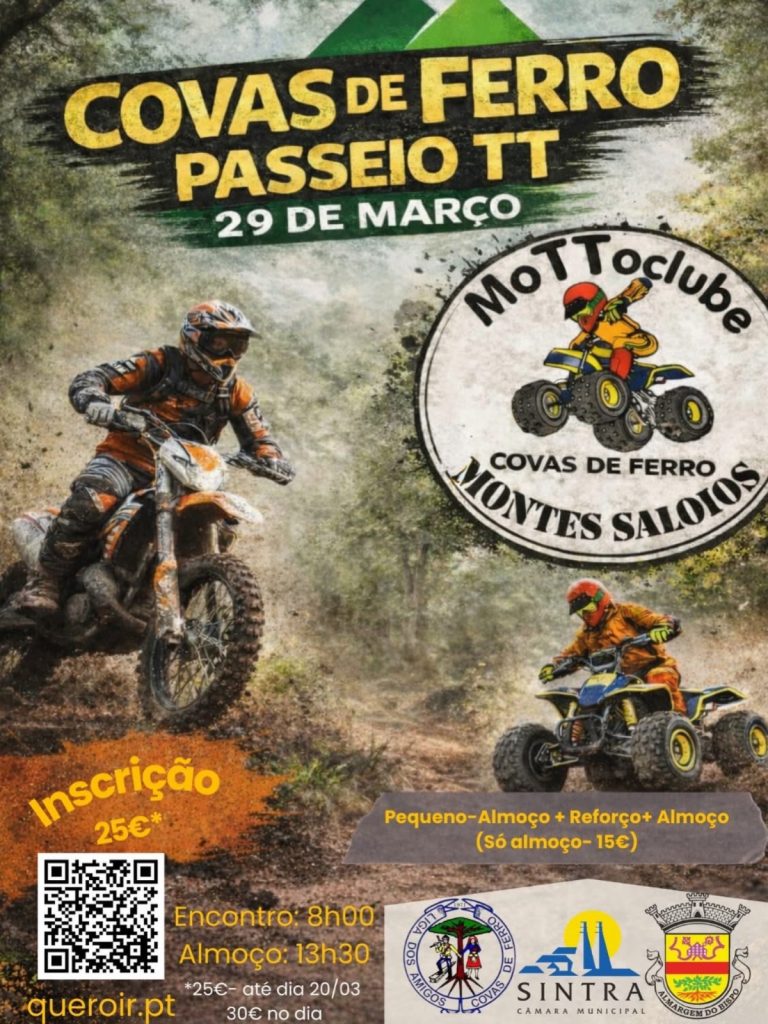 A localidade de Covas de Ferro, na freguesia de Almargem do Bispo, recebe no dia 29 de março, o “Passeio TT Covas de Ferro”, uma iniciativa organizada pelo Mottoclube Covas de Ferro Montes Saloios que promete reunir entusiastas do todo-o-terreno.