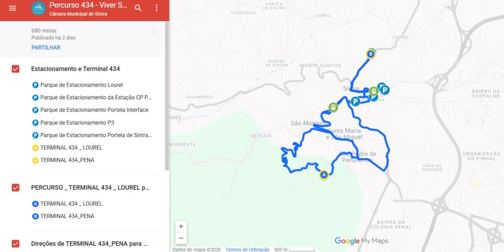 O percurso do autocarro 434, que liga os parques de estacionamento periféricos aos monumentos e centro da vila, passa a ter partida e chegada no Lourel, junto das antigas oficinas municipais e do Cemitério de São Marçal, passando pelo interface da estação da CP da Portela, estação ferroviária de Sintra (Estefânea) e parque da Pena.