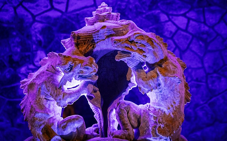 Entre túneis, lagos e símbolos escondidos, ganham vida narrativas de deuses caprichosos, heróis destemidos e criaturas lendárias, sempre em diálogo com a arquitetura singular do espaço.